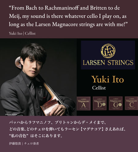 この度、伊藤さんが日本人チェリストとして初めて、デンマークに本社を置く弦の世界的メーカー【Larsen Strings】(ラーセン・ストリングス)より公認専属アーティストに指名され、契約を締結、国際ロースターに加わる運びとなりました。